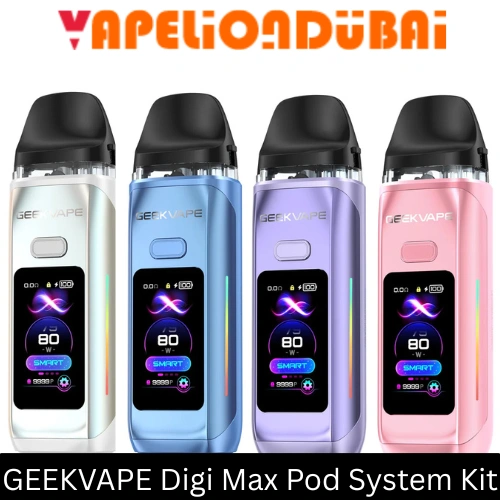 The GEEKVAPE Digi Max Pod Mod Kit 3000mAh is a powerful yet compact pod system designed for vapers who value performance, style, and convenience. It has a built-in high-capacity battery, a smart OLED display, and many safety features. This device offers an advanced vaping experience for both beginners and experienced users in Dubai and across the UAE.