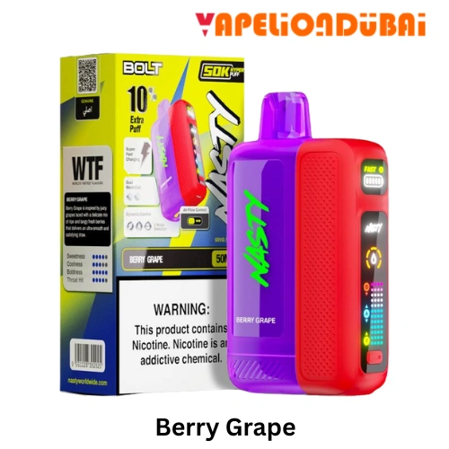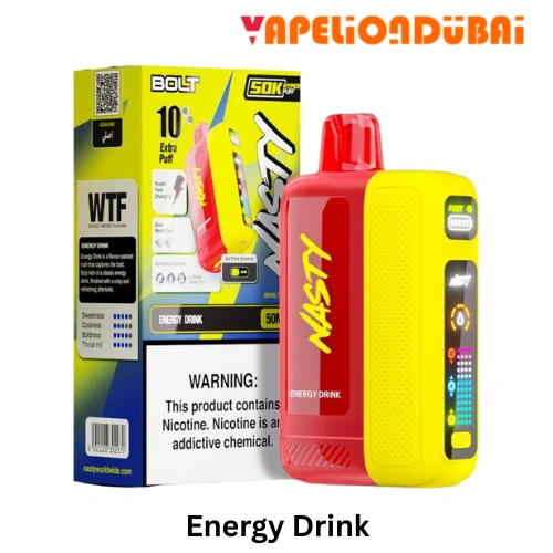 The Nasty Bolt 50000 Puffs is built for vapers who want extreme puff life, intense flavor, and high satisfaction. With its dual mesh coil, rechargeable battery, and 50mg nicotine punch, it’s one of the most powerful disposables available in Dubai today.